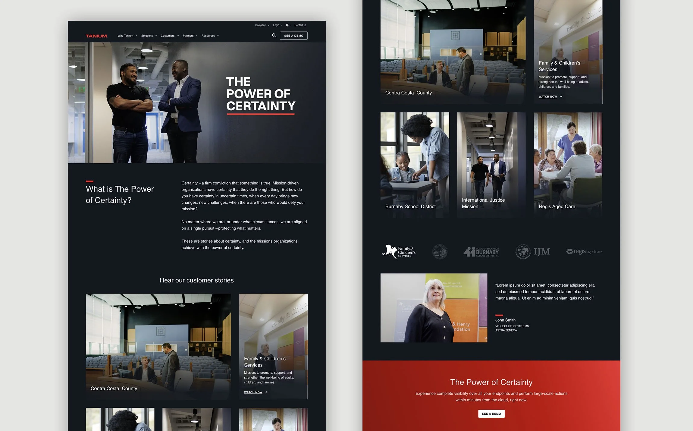 A brand campaign that elevated Tanium customer stories with a unified visual system showcasing their confidence in Tanium’s endpoint security.